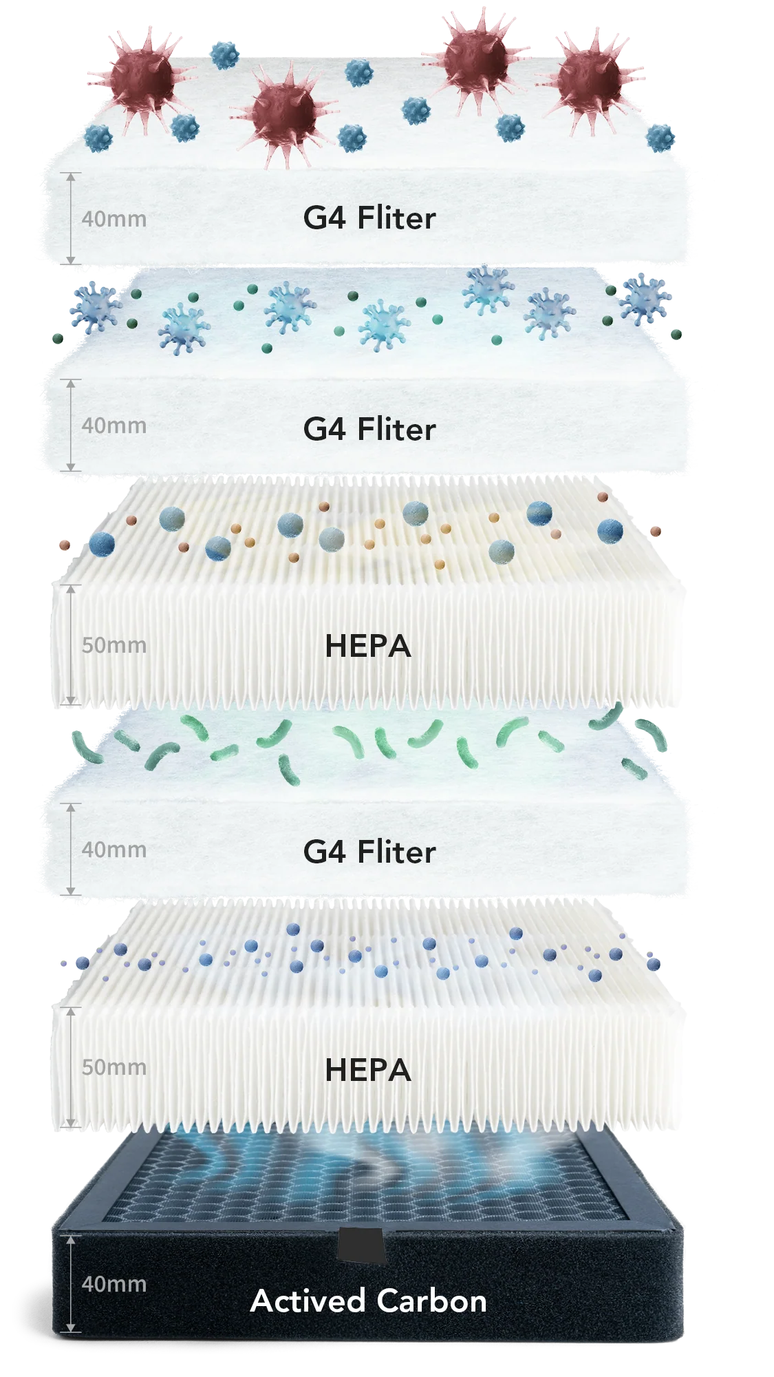 System filtracji 6-warstwowy (w tym dual HEPA H12 i węgiel aktywny)