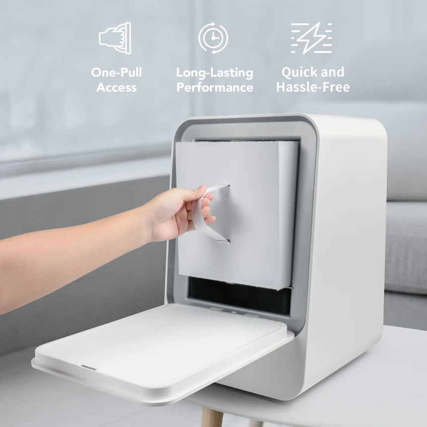 Phrozen Air Purifier Max to nie tylko wydajność, ale także wygoda użytkowania, która została dopracowana w każdym szczególe. Zapomnij o skomplikowanym serwisowaniu czy rozkręcaniu urządzenia przy każdej wymianie wkładów. Dzięki innowacyjnej konstrukcji typu “szuflada”, wymiana filtrów zajmuje dosłownie jedną sekundę i nie wymaga żadnych narzędzi. Po prostu wysuwasz stary moduł i wsuwasz nowy – gotowe!