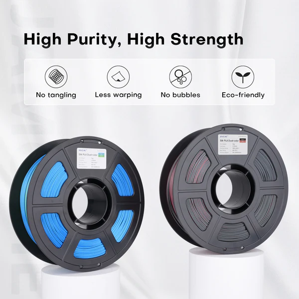 Odmień swoje projekty druku 3D dzięki filamentowi Jamghe Silk PLA Rainbow. Zaprojektowany dla twórców, którzy szukają zarówno estetycznego wyglądu, jak i niezawodnej wydajności, filament ten zapewnia unikalne połączenie żywych przejść kolorów i gładkiego, błyszczącego wykończenia.